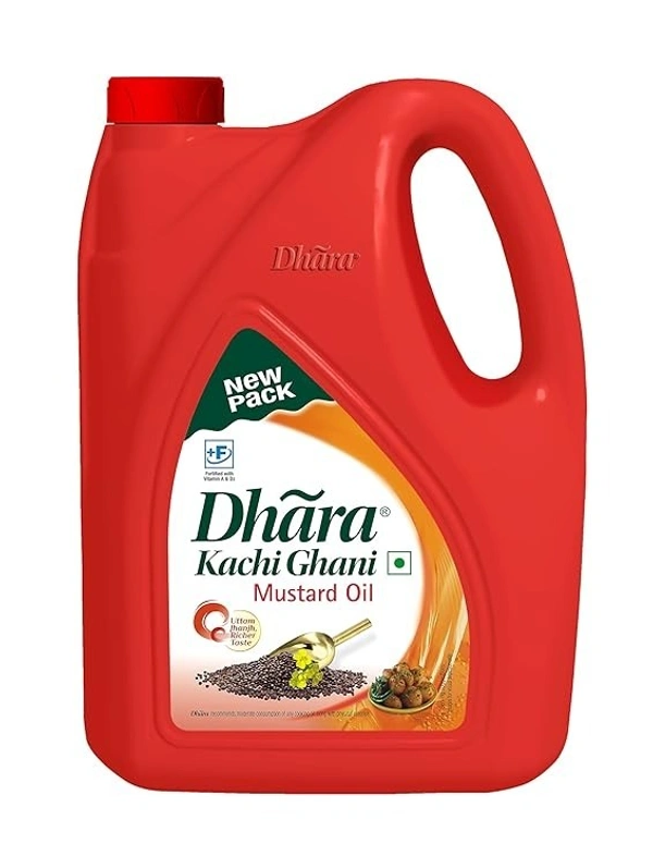 Dhara Kachi Ghani Mustard Oil (0% Trans Fat), 5 L Jar/4.5 L Jar (May contain free turmeric powder 50g)