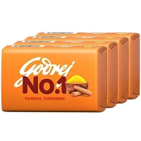 Indulge in the luxurious experience of Godrej No. 1 Sandal and Turmeric Soap, the third-largest soap brand by volume in India. Enriched with the natural goodness of sandalwood and turmeric, this high-quality Grade 1 soap promises to cleanse and nourish your skin, leaving it feeling clean, refreshed, and naturally beautiful. The rich lather helps to remove dirt and impurities, while the soothing properties of sandalwood relax your mind and body, and the antiseptic qualities of turmeric cleanse and purify your skin, revealing a radiant, healthy glow. Suitable for all skin types, this long-lasting, fragrant soap offers a gentle yet effective cleansing experience, making it the perfect choice for your daily bathing ritual.